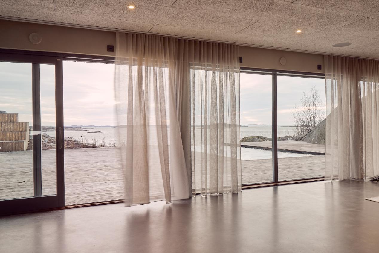 Gardiner har ikke bare en estetisk funksjon i innredningssammenheng. Materialets egenskaper påvirker også lysinnslipp, innsyn, brannsikkerhet og mye mer. – Med gardintekstilene fra Nevotex kunne vi ta hensyn til alle disse aspektene og samtidig bevare en elegant stil, sier Sofia Grankvist.